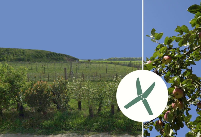 Afin de compléter la production de la ferme urbaine, la commune a planté à l'automne 2022 un verger comprennant environ 200 arbres fruitiers et 500 petits fruits ( auxiliaires de culture) au centre de la parcelle maraîchère pour délimiter de grands carrés de culture.