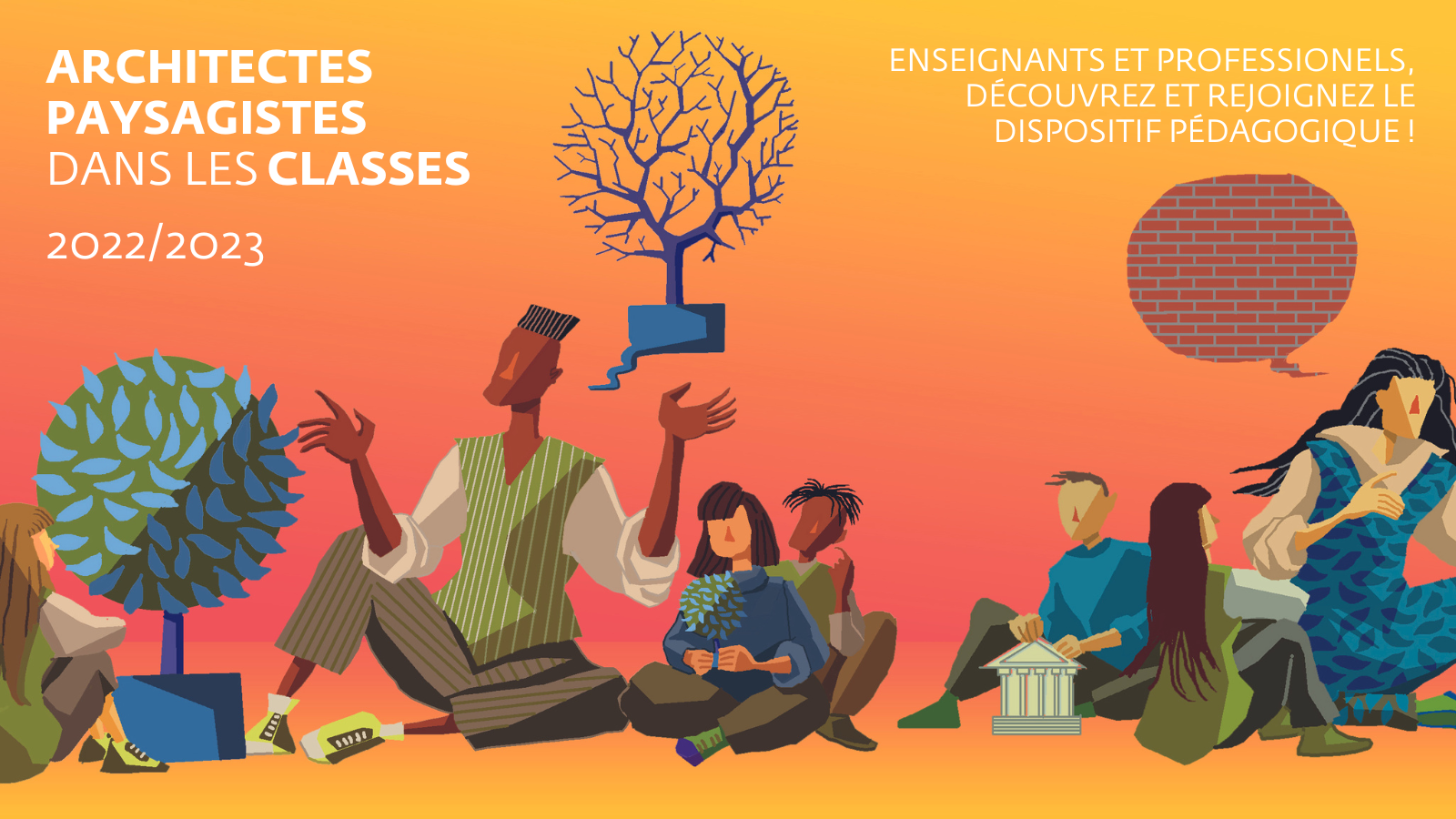 Participer à la diffusion de notre dispositif pédagogique ! Affiches, flyers, réseaux sociaux : nous vous partageons notre kit graphique "Architectes et paysagistes dans les classes".